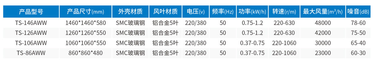 C、適用于園藝溫室大棚通風降溫、畜牧場降溫。